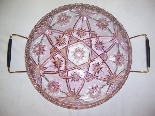 The pieces found back then seemed to be limited to Platters and Relish Plates in this particular color and speculation is that it was either an experimental order or possibly a special order. Back then there was no documentation these pieces in this fabulous color! Clemo was told that TAGF was going to feauter the one he bought in his next book. But that didn't happen. I am not sure if he ever did do a book with the Pink EAPC platter or Relish in it. When we sold ours they brought a good price. I can't remember the exact figure but it was in the hundreds of $$$ (maybe $300??)