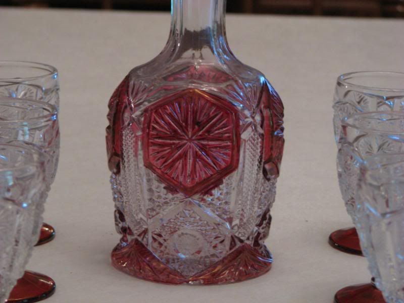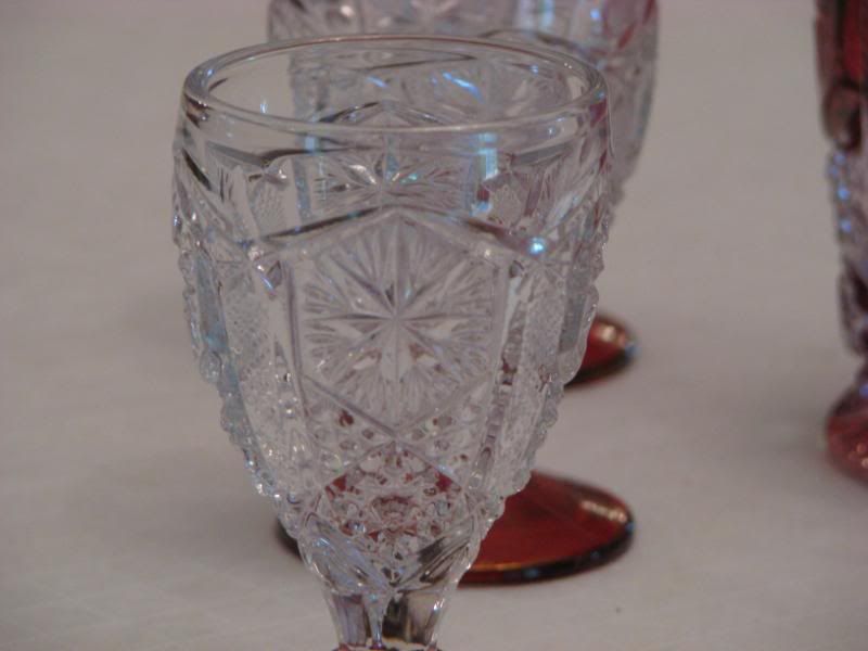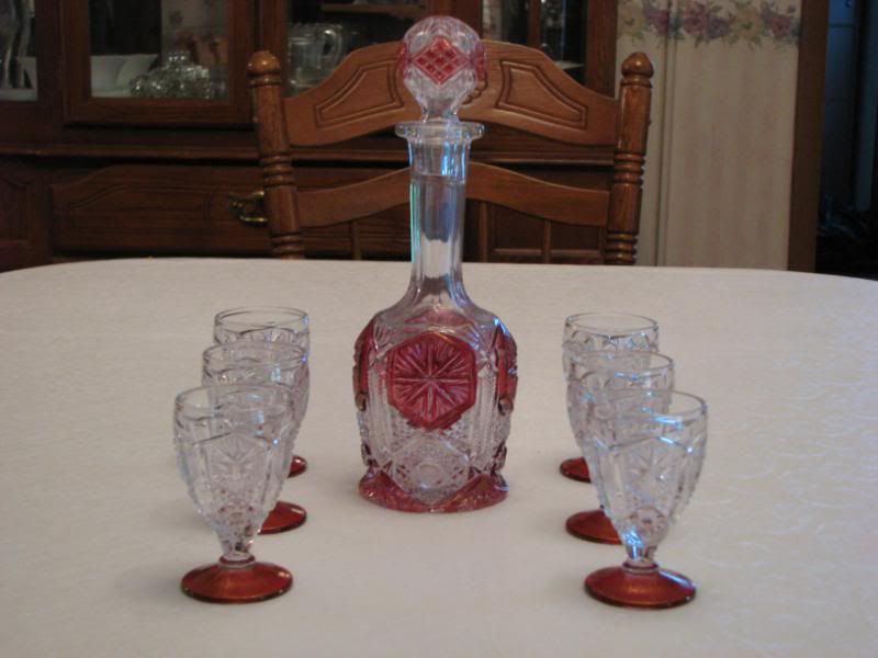 @decoqueen Janice, Looking at your beautiful pieces on the link. On the line with the six pack of red tumblers with the white line decoration. I think they may be Morgantown. Would you be so kind to post a pic from the side of one with dimensions? I would like to compare it with a set I have in Amber Glass. BTW, I just love those Deco Ladies. Wonderful Collection. Made a mess of my keyboard. LOL