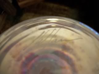 Anyway...I bought these over a year ago and just getting around to listing them. I discovered a signature...Anyone recognize it. The picture doesn't do it justice ( I have a set of 6) Beautifully blown glass...very iridescent. I've been trying to find an ID for hours and would appreciate any help. I found similar glass by "Estaban Prieto"...but that's not the signature:I'll stick around for a bit and scroll to catch up.