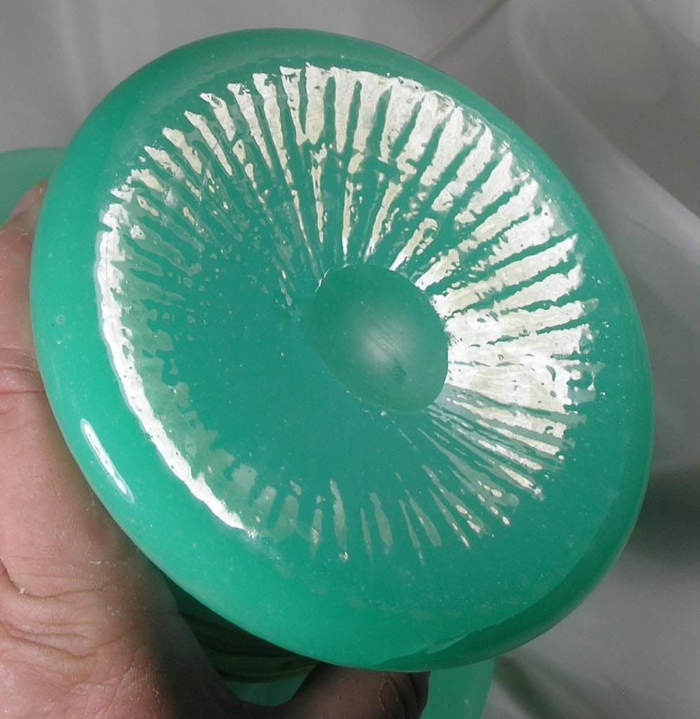@okcoolwheels_Suzy - We think alike! I adopt chipped and cracked pieces all the time. This one I found at a GW many months ago. Just $3. I prefer to find perfect pieces, of course, but if it's old, pretty, unusual, glows, so long as it's CHEAP, it generally comes home with me. I probably have 10 pieces that have some kind of damage to them. I've tried to break myself of this, but no luck, so far. I just see the imperfect piece and think, "oh, what a shame, but I'll take you home and love you just the way you are." The only exception is sick glass. That just makes me mad when I see it, lol.